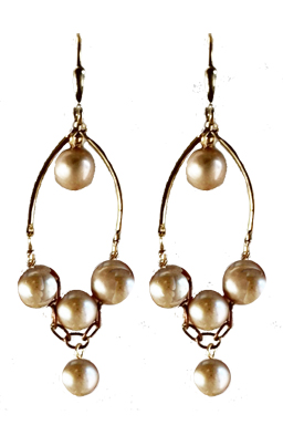 Champagne colored pearls with brass findings on 22k vermeil lever back earring fixtures.