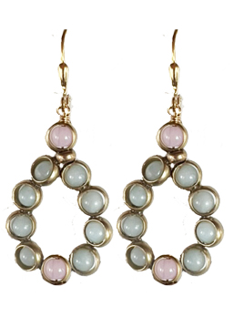 Faceted amethyst, fuscia, ruby and smooth dyed new jade beads encased in brass rings on 22K vermeil lever back earring fixtures.