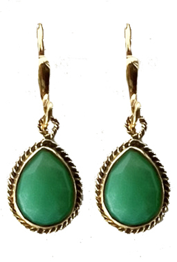 Vermeil bezel around faceted pistachio green chacedony teardrop on 22K vermeil lever back earring backing. .4"L x .25"W