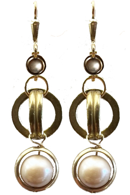 Classic elegant style made with vintage brass round links with new brass rings and pale jade prehnite beads on 22K vermeil lever back earring fixtures.