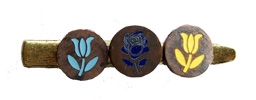 Assorted 1950's floral enamel discs on antiqued bronze toothed hair clip to pin up a bit of hair. 1.75" L x .5" W