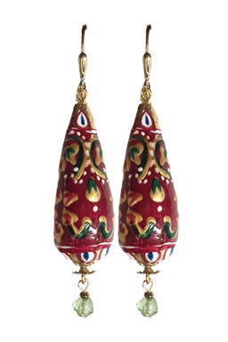 Handpainted Fabrege Egg inspired  drop earring with vintage accent beads on 22K vermeil leverback earring fixtures.  2.5"L x .6"W