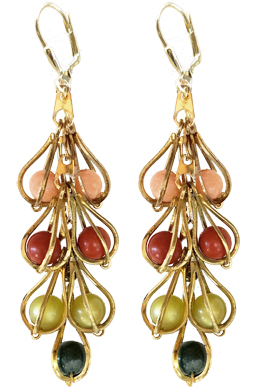 Elegant long feathery dangles with vintage and (new) semi precious stone beads (African jade and coral) on 22K vermeil lever back earring fixtures.