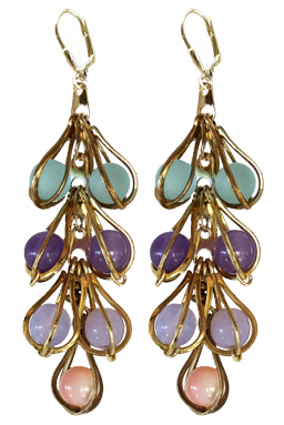 Elegant long feathery dangles with vintage and new glass and coral beads on 22K vermeil lever back earring fixtures.
