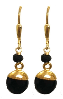 Delicate faceted onyx drops & rondelles with vermeil caps and leverback earring fixtures. 1"L x .3"W