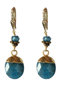 Delicate faceted teal apetite drops & rondelles with vermeil caps and leverback earring fixtures. 1"L x .3"W