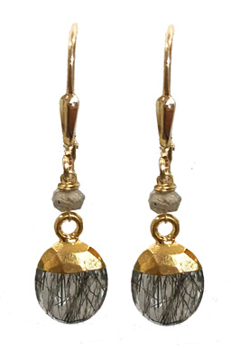 Delicate faceted tourmaline drops with vermeil caps , faceted labradorite accents and leverback earring fixtures. 1"L x .3"W