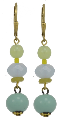 New and vintage pastel beads on 22K vermeil leverback earring fixtures. 1 1/4" L x 1/4" W