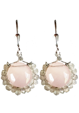 Faceted aqua chalcedony circles surrounded by faceted labradorite beads on sterling silver lever back earring fixtures. 1.5"L x 1"W