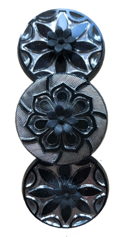 1920's & '50's glass stones in jet and silver on French barrette fixture. 4.5" x 1.25"W