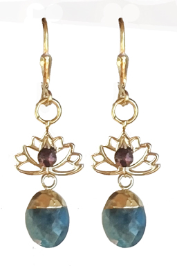 Brass lotus top with 1920's glass accent atop vermeil topped teal apatite drops on 22K vermeil lever back fixtures.