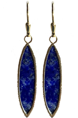 Vermeil bezel surrounds lapis lazuli on 22K vermeil lever back earring fixtures.