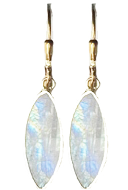 Vermeil bezel surrounds pale white moonstone (with irridescent streaks) on 22K vermeil lever back earring fixtures.