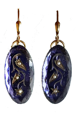 1930's vintage glass faceted ovals with tiny faux pearl details decorate this arte nouveau style earring design with verneil lever back closrures (sterling silver dipped in 22K gold fill).