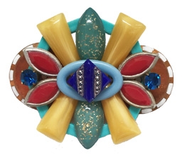 All vintage materials including 1930's-'60's glass, '60's plastics and '50's enamel work. 3"L x 3"W