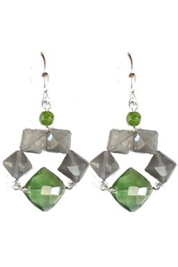 Modern faceted gray agate with faceted serpentine and Taiwan jades on sterling silver lever back earring fixtures.