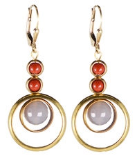 Mod arrangement of brass hoops surrounding gray agate and red jasper on 22K vermeil lever back earring fixtures. 1.75""L x 1.25"W