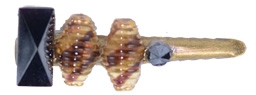 Deco arrangement of 1920's-'40's fancy scalloped & gold leafed & hematite vintage glass stones on antiqued bronze toothed hair clip to pin up a bit of hair. 1.75" L x .5" W